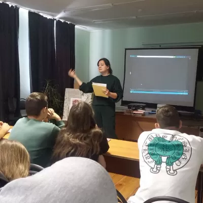 Ведущая рассказала первокурсникам юридического направления Института социальных и гуманитарных знаний о жизни Бургана Шахиди. В завершение лекции ведущая устроила викторину на тему «Наркотикам — нет!».